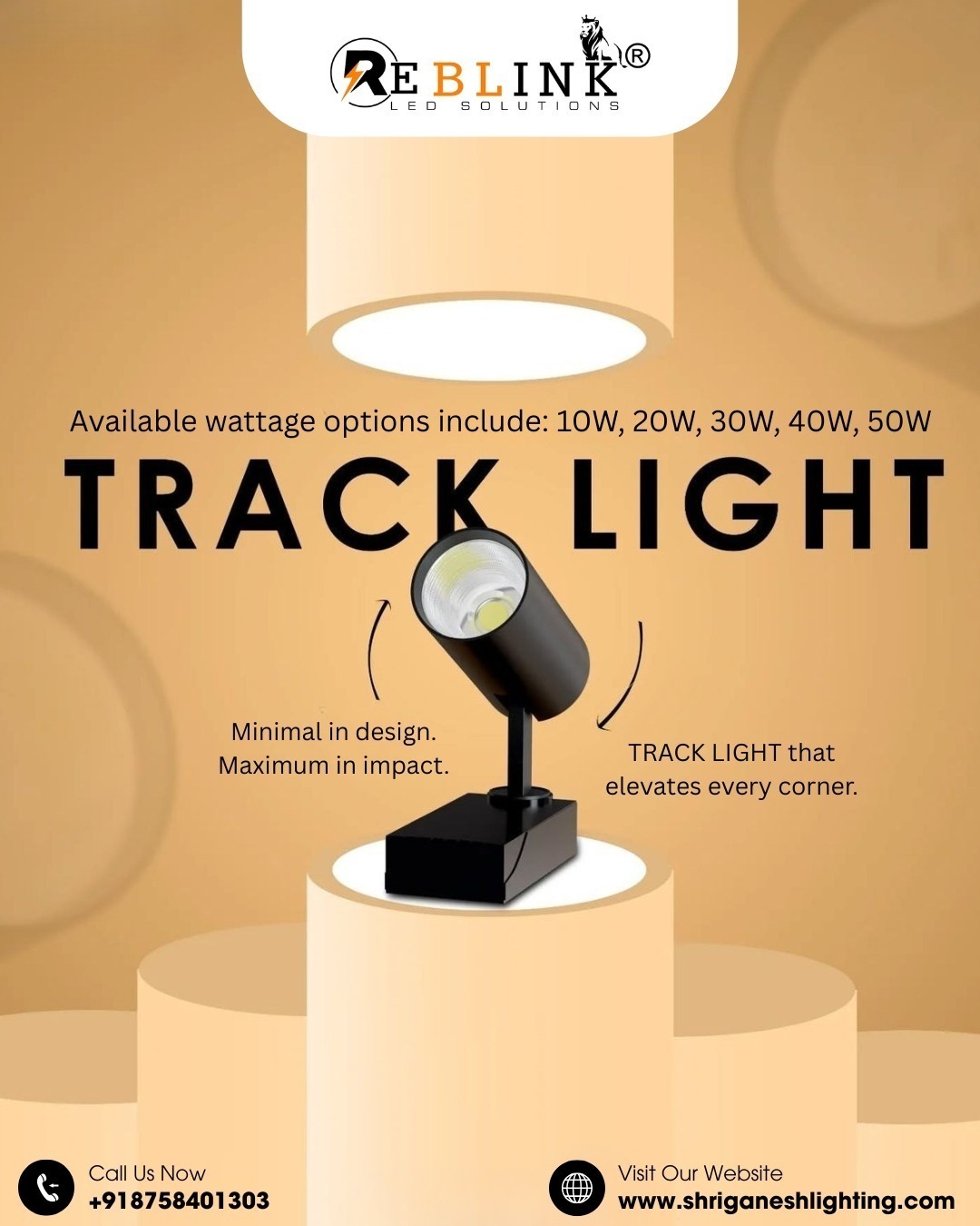 Shri Ganesh Lighting Track Lights offer directional lighting with beam angles >90° and focused 36° spotlights. Available wattages (10W, 20W, 30W, 40W, 50W) let designers balance intensity and energy efficiency perfectly.
